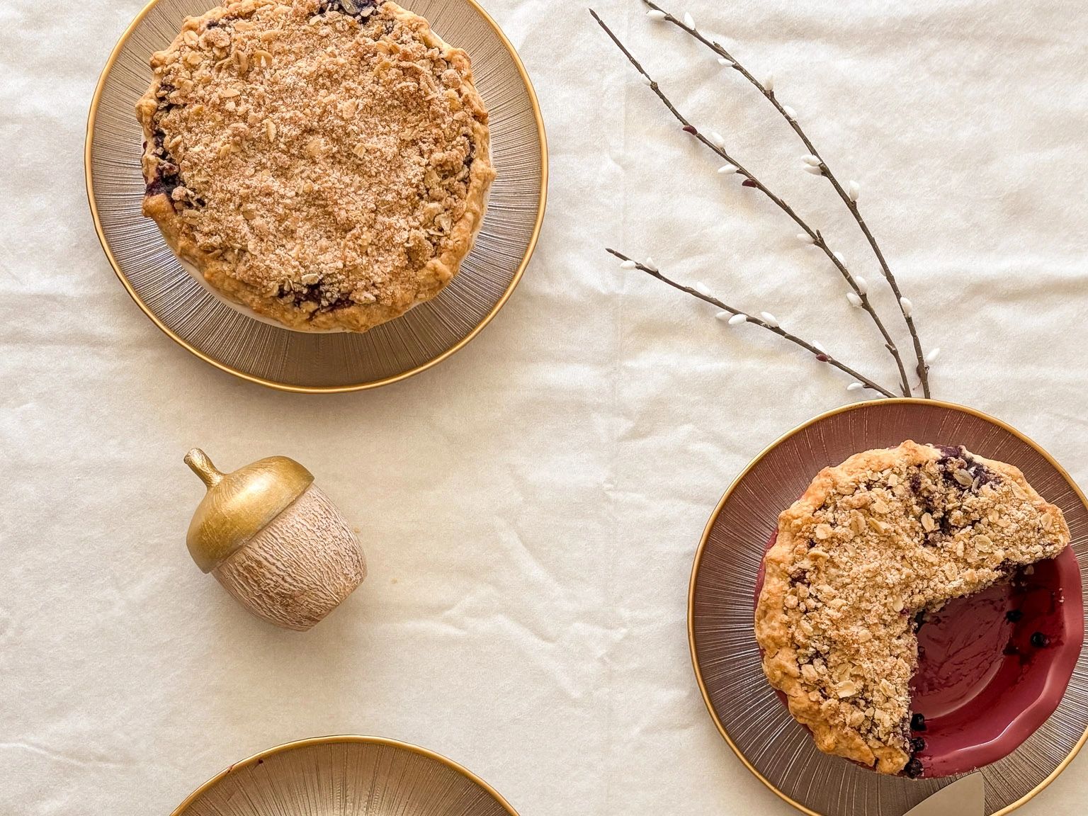 A deep-blue swirl of sweetness and warmth, topped with a soft crumble that tastes like the first chill of winter meeting the oven’s glow.